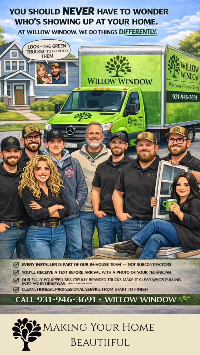 Since 1981, Willow Window has been helping Middle Tennessee homeowners enhance their spaces with energy-efficient replacement windows, custom window treatments, entry doors, and garage doors. Earning and keeping your trust is at the heart of what we do. That’s why every interaction is guided by respect, honesty, and outstanding service.